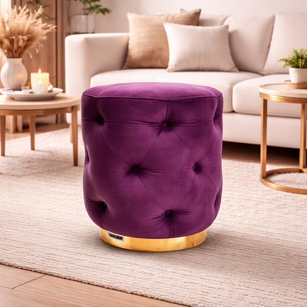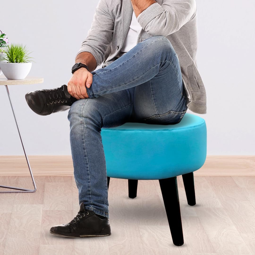 Stool for Living Room Sitting Plain Ottoman upholstered Foam Cushioned pouffe Puffy for Foot Rest Home Furniture with 4 Wooden Legs Rexin Plain