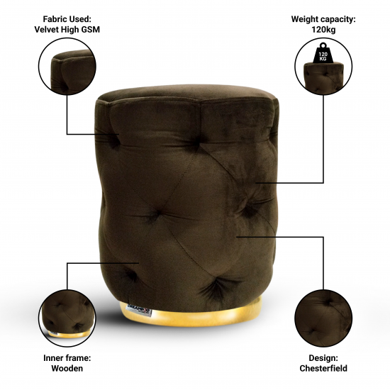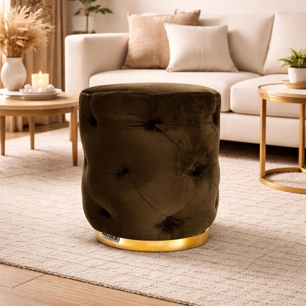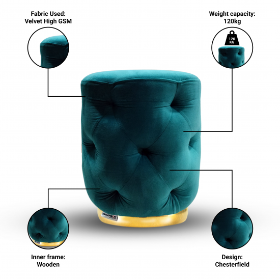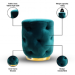 Dreampod Ottoman Pouffes Stool for Living Room Sitting Furniture Wooden Velvet Puffy Stool Footrest Footstool Pouf for Home Decor, Dressing Table Stool.